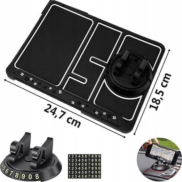 📏 Compatibilità universale: Misurando 24,7 x 18,5 cm, questo tappetino si adatta perfettamente a qualsiasi cruscotto auto, garantendo un posizionamento saldo e sicuro.